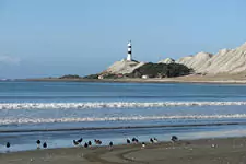 This area of the coast is home to various threatened species such as the banded dotterel, black-fronted terns, Kiwaia ‘Cloudy Bay’ moth, katipo spider, coastal tree broom (Carmichelia muritai), and sea holly (Eryngium). It is also an important resting point along the migration path for species such as godwit and ruddy turnstones, and haul-out area for seals.